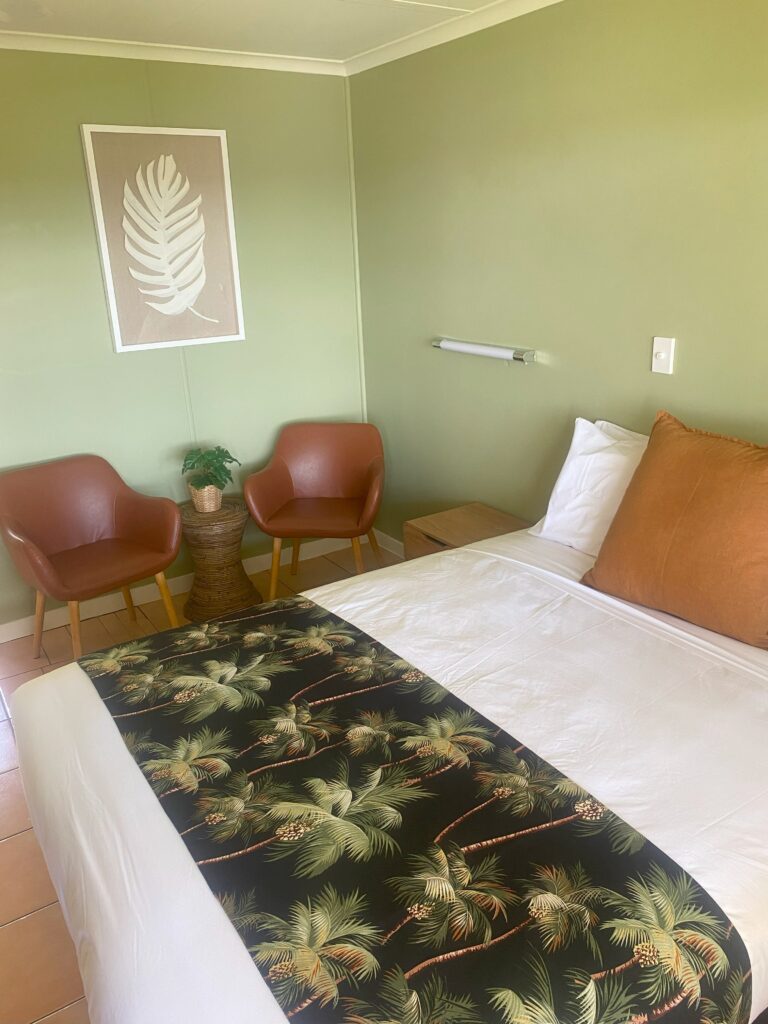 Elevated position with water views, these older style rooms contain one Queen size bed. Parking behind room with outdoor seating undercover on a shared veranda.