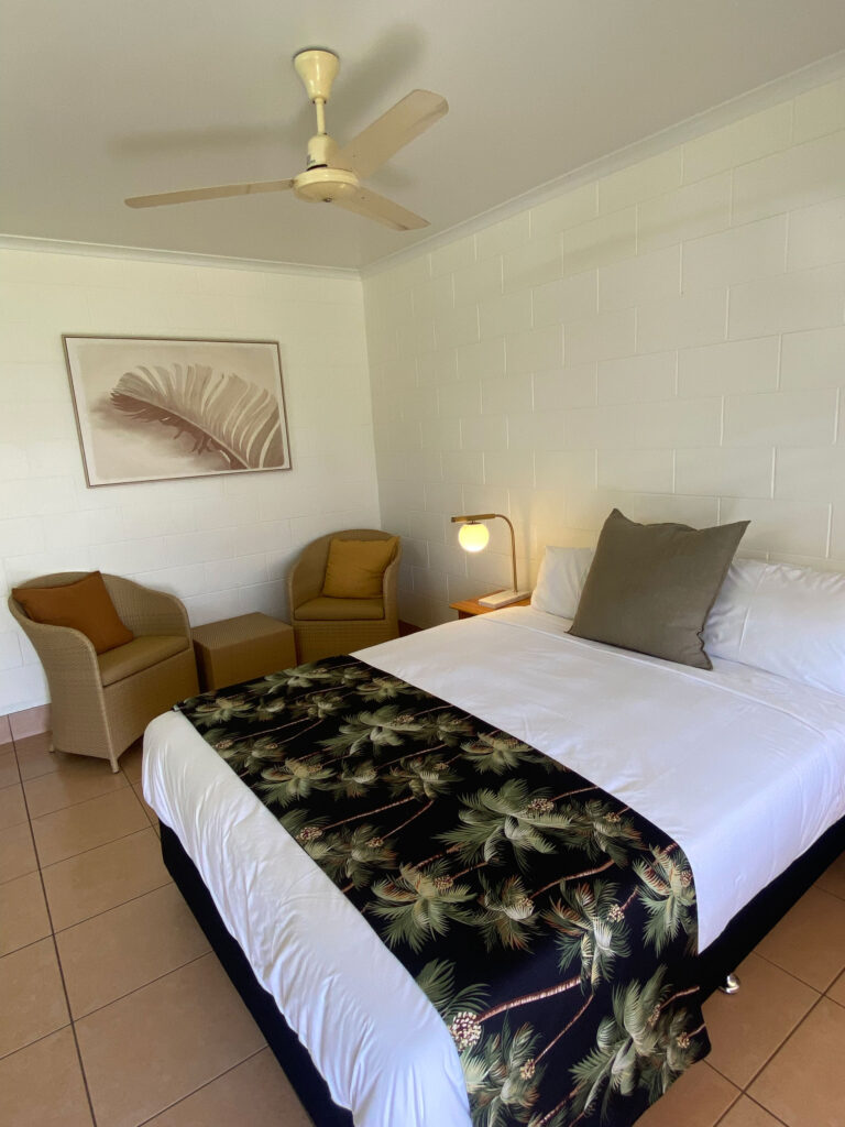 These older style unrenovated rooms are competitively priced and contain one Queen size bed. These compact rooms all have views over the garden, and out to the waterfront with outdoor undercover seating on a shared veranda.