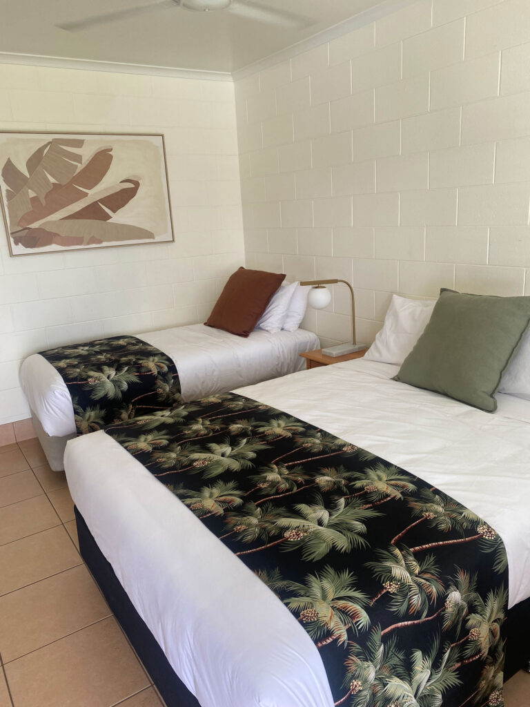 These older style unrenovated rooms are competitively priced and contain one Queen size bed and one Single bed. These compact rooms all have views over the garden, and out to the waterfront with outdoor undercover seating on a shared veranda.